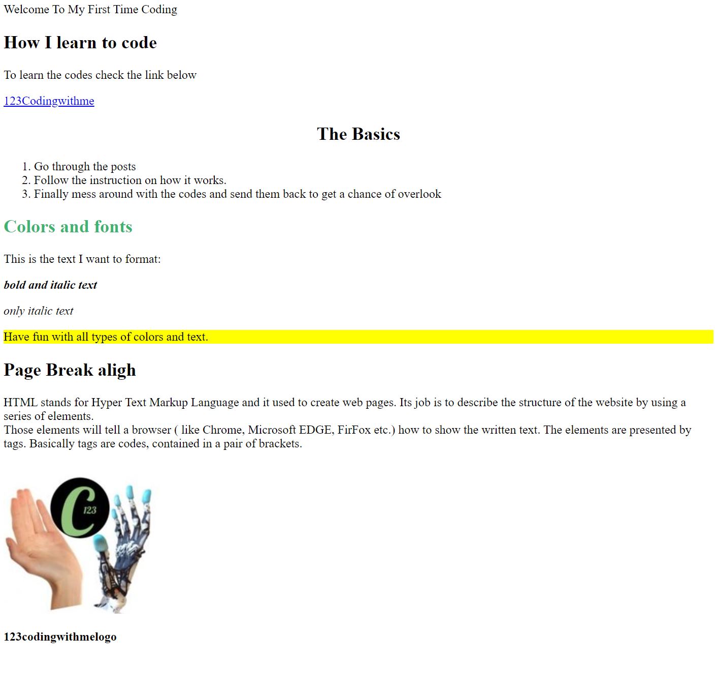 I compiled a HTML document to show you how to utilize some of the commonly used HTML tags, attributes and anchors to create a simple website. You can find it under projects from the menu. When I open my HTMLproject.html file in any web browser, it looks like following;