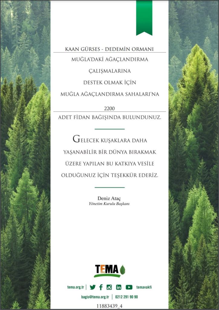 This is a very special responsibility project that I run for my own community. The problem was not fun but process that I went through was very enjoyable. It showed me that if people want can come together and make a difference! This post to say thank you to supporters for the donation of 2200 sapling to the TEMA (The Turkish Foundation for Combating Soil Erosion) “Yeniden Yeşerteceğiz” campaign for replanting trees in burnt locations to restore wildlife in beautiful country – Turkey…….